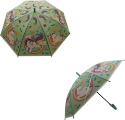 Roztomilý detský dáždnik s motívom jednorožcov ochráni vaše deti pred dažďom a zároveň poteší hravým dizajnom. Vďaka vystreľovaciemu mechanizmu sa rýchlo otvorí, pevná oceľová konštrukcia zaistí stabilitu a plastová rukoväť pohodlné držanie aj pre drobné ruky.