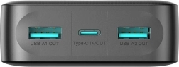 Disponuje tromi portami pre nabíjanie - dvoma USB-A a jedným Type-C, čo umožňuje nabíjanie až troch zariadení naraz.