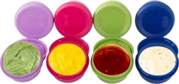 Užite si svoje obľúbené omáčky a dipy kdekoľvek – tieto farebné dózy s objemom 80 ml majú nepriepustné uzávery, ktoré spoľahlivo bránia vytečeniu. Sú skvelé do lunch boxu, tašky či batohu a udržia obsah čerstvý a hygienicky uložený.