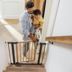 Montáž zábrany je veľmi jednoduchá a nevyžaduje žiadne nástroje ani vŕtanie do stien či dverových rámov. Vďaka systému 4-bodového tlakového upevnenia je zábrana bezpečne upevnená, bez poškodenia povrchov. Navyše ochranné podložky chránia steny a podlahy pred prípadnými škrabancami, čo pomôže udržať estetickosť vášho domova.