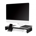 Vytvorte si pohodlné a prehľadné pracovné miesto so stojanom pod monitor s nosnosťou až 25 kg. Vďaka skladacej konštrukcii ľahko upravíte šírku na 420 / 470 / 520 mm. Praktická zásuvka a integrovaný držiak na smartfón a tablet udržia váš stôl v perfektnom poriadku, zatiaľ čo klávesnicu a myš upracete pod robustný plastovo‑kovový stojan.