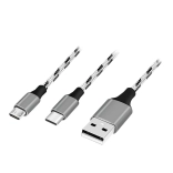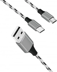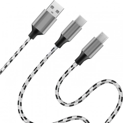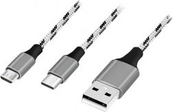 Tento praktický kábel kombinuje Micro USB a USB‑C v jednom riešení, takže ľahko pripojíte staršie aj novšie zariadenia. Opletený bavlnený povrch zvyšuje odolnosť proti lámaniu a opotrebovaniu, zatiaľ čo kovové koncovky pridávajú prémiový vzhľad aj dlhú životnosť.