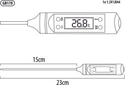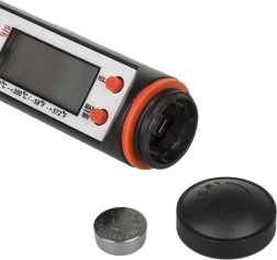 Vysoká kvalita a presnosť robia z tohto ihlového teplomera skvelý nástroj na meranie teploty mäsa, koláčov, polievok, omáčok, vody, mlieka, dezertov a ďalších pokrmov. Teplomer je vybavený vpichovacou sondou, ktorú stačí zapichnúť alebo ponoriť do pokrmu pre rýchle a jednoduché odčítanie teploty na dobre čitateľnom displeji. Je vhodný ako do domácich kuchýň, tak aj na použitie v reštauráciách a gastronomických zariadeniach.