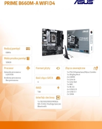 ASUS PRIME B660M-A WIFI D4 je moderná pamäťová doska navrhnutá na optimalizáciu pripojenia a spracovania dát vo vašom počítačovom systéme. Vychutnajte si výkonné technológie s podporou najnovšej generácie komponentov.
