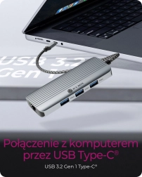 Stolová dokovacia stanica 6v1 je ideálnym riešením pre prácu aj cestovanie, poskytuje mnoho možností pripojenia prostredníctvom USB Type-C. Podporuje obrazový výstup 4K a má spoľahlivé pripojenie cez Gigabit Ethernet.