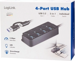 Užite si bleskové rýchlosti prenosu dát až 5 Gbit/s vďaka portom USB 3.2 Gen 1. Ideálne pre veľké súbory, videá vo vysokom rozlíšení a náročné aplikácie. Každý port má vlastný vypínač, čo umožňuje selektívnu aktiváciu alebo deaktiváciu jednotlivých zariadení bez vplyvu na ostatné. LED indikátor zobrazuje stav každého portu na prvý pohľad. Súčasťou je napäťový adaptér 5 V/3.5 A (17.5 W), zaistujúci stabilné napájanie aj pre náročné zariadenia.