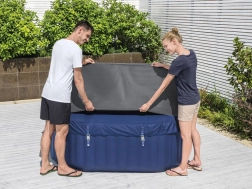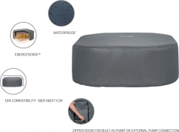 Odolný materiál DuraPlus je navrhnutý na dlhodobé vonkajšie používanie – je vodoodolný, rozmerovo stály a ľahko sa udržiava. Praktický zipsový otvor umožňuje pripojiť vstavanú alebo externú pumpu bez potreby kryt skladať, takže údržba je pohodlná a rýchla.