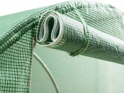 Samozatváracie dvere a 8 moskytiérami vybavených okien poskytujú skvelú ventiláciu a možnosť regulácie teploty vo vnútri tunela. Umožňujú jednoduchú manipuláciu, takže skleník je praktickým pomocníkom pre každodenné použitie. Pevná fólia s UV4 filtrom chráni rastliny pred škodlivým UV žiarením a vďaka polypropylénovej sieti zabezpečuje materiál pevnosť a ochranu pred roztrhnutím.