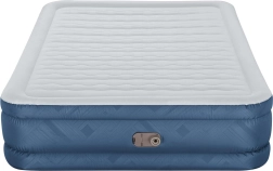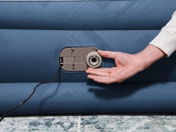 Integrovaná elektrická pumpa 220–240 V nafúkne posteľ približne za 3 minúty. K dispozícii je aj možnosť ručného/nožného dofukovania mimo dosahu elektriny.
