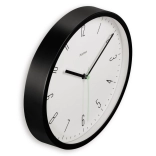 Nadčasový dizajn týchto nástenných hodín vynikne v modernom aj klasickom interiéri. Biely ciferník s výraznými arabskými číslicami zabezpečuje okamžitú čitateľnosť, zatiaľ čo tri ručičky (hodinová, minútová a sekundová) poskytujú maximálny prehľad o čase. Čierny rám dodáva elegantný kontrast a univerzálny vzhľad.