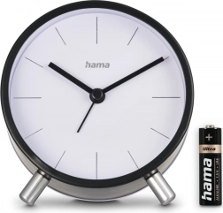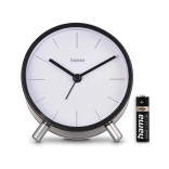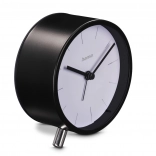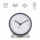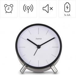 Štýlový stolový budík s analógovým ciferníkom a bielou prehľadnou stupnicou v elegantnom čiernom prevedení. Ponúka klasický dizajn s kovovými nožičkami, jednoduché nastavenie jedného času budenia, funkciu odloženia (driemania) a podsvietenie na stlačenie tlačidla, ktoré sa automaticky vypne.