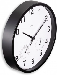 Hodiny sú vybavené integrovaným teplomerom a vlhkomerom, ktoré umožňujú sledovanie teploty a vlhkosti v miestnosti. Teplotný rozsah od -30°C do +50°C a vlhkosť od 0% do 100% robia tento produkt praktickým doplnkom pre každé prostredie.