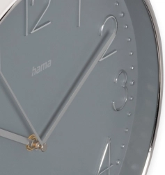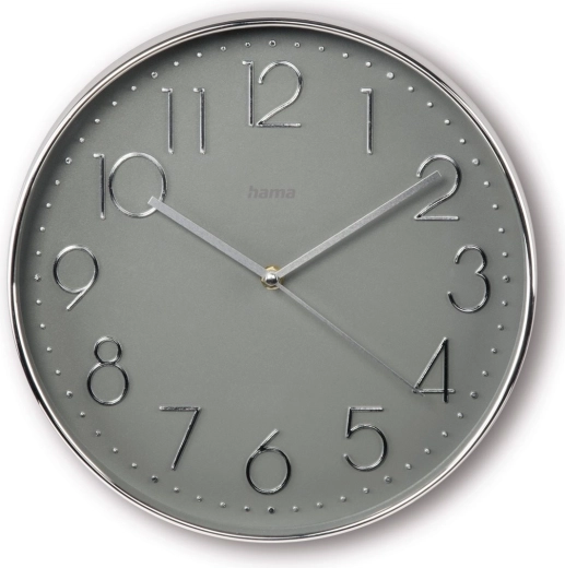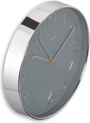 Sivý ciferník s priemerom 30 cm so strieborným rámom dodáva nadčasový vzhľad. Veľký analógový displej s výraznými ručičkami uľahčuje čítanie času z každej vzdialenosti.