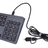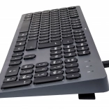 Plne vybavená drôtová klávesnica s tichými klávesmi. Pripojenie cez USB-A alebo USB-C kábel, ktorý je možné v prípade poškodenia ľahko vymeniť, čo zvyšuje životnosť a znižuje náklady. Obsahuje adaptér USB-C na USB-A.