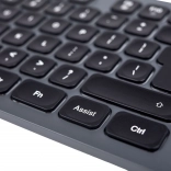 Ergonómia a komfort - klávesnica s nožnicovým mechanizmom je tichá a disponuje nastaviteľným podsvietením pre komfortnú prácu v tmavých prostrediach. Sklápateľné nožičky prispôsobia uhol klávesnice pre maximálne pohodlie.