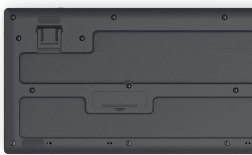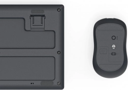 Klávesnica je vybavená skladacími nožičkami pre prispôsobenie uhlu, zatiaľ čo myš má symetrický tvar a polymérne sklznice.