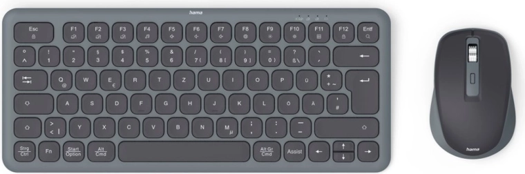 Táto sada bezdrôtovej klávesnice a myši Hama WKM-500 vám umožňuje jednoduché pripojenie k rôznym zariadeniam vďaka podpore USB a Bluetooth. Klávesnica je kompaktná a obsahuje 79 kláves bez numerického bloku, čo šetrí miesto na vašom stole. Môžete rýchlo prepínať medzi zariadeniami pomocou jediného tlačidla, čo zaisťuje flexibilitu pri práci.