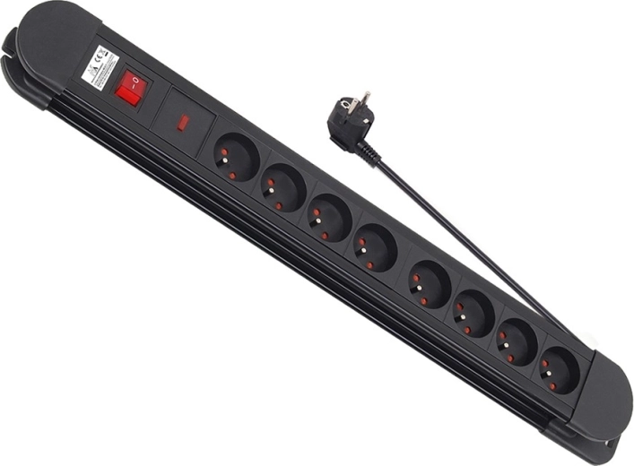 Lišta je vybavená otvormi a výrezmi na ľahkú nástennú montáž, takže ju môžete umiestniť presne tam, kde potrebujete – pod stôl, na stenu alebo do rozvádzača káblov. Kábel s dĺžkou 1,5 m poskytuje dostatočný dosah k najbližšej zásuvke a udržiava pracovisko prehľadné.