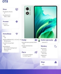 Zariadenie poháňa osemjadrový procesor Unisoc T606, ktorý v spojení s 6 GB RAM zaisťuje plynulý chod aplikácií a hier. Interné úložisko o kapacite 256 GB poskytuje dostatok miesta pre vaše súbory, s možnosťou rozšírenia pomocou microSD karty. Batéria s kapacitou 8800 mAh umožňuje až dvojdňovú prevádzku bez nutnosti nabíjania, pričom podpora rýchleho nabíjania 18 W skracuje dobu doplnenia energie. Tablet je vybavený štyrmi stereo reproduktormi pre kvalitný zvukový zážitok a ponúka 13MP zadnú a 8MP prednú kameru pre zachytenie dôležitých okamihov.