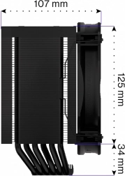 Fortis 5 Black je robustný chladič CPU navrhnutý pre maximálnu účinnosť a minimálnu hlučnosť. Husto rebrovaný hliníkový pasív napojený na šesť medených heatpipe výborne odvádza teplo z procesora. Optimalizácia pre jednosmerný prietok vzduchu zabezpečuje špičkový výkon v danej triede a stabilné teploty aj pri dlhodobom zaťažení.