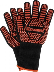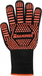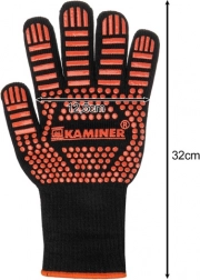 Tieto žiaruvzdorné rukavice KAMINER sú navrhnuté na manipuláciu s horúcimi nádobami, roštami a plechmi. Pevná viacvrstvová konštrukcia s prímesou preoxidovaného vlákna a silikónovým protišmykom zabezpečuje istý úchop a krátkodobú ochranu pred vysokými teplotami pri varení aj grilovaní.