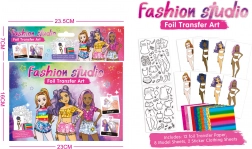 Objavte svoju kreativitu pomocou dizajnérskeho portfólia, ktoré obsahuje 8 modeliek, 2 listy šablón oblečenia a 12 farebných lepiacich fólií.