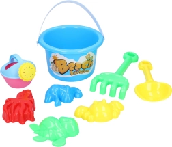- 8 dielov v balení: vedierko s obrázkom, lopatka, kanvička, hrabličky a 4 formičky