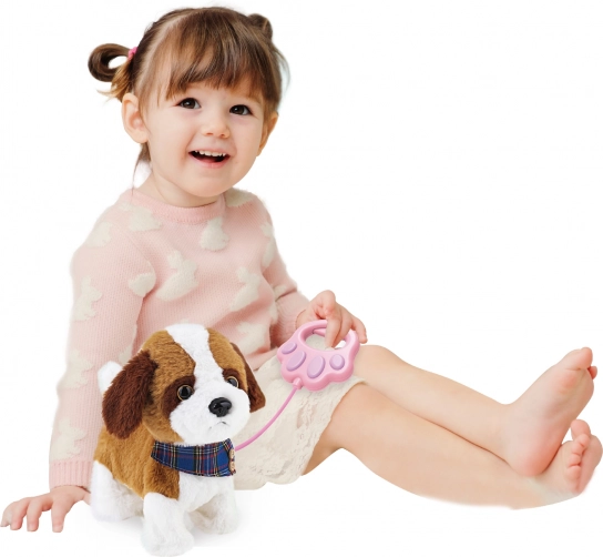 Roztomilý plyšový psík s veľkosťou 22 cm, ktorý po pripojení kábla s ovládačom dokáže chodiť, štekať, krútiť chvostíkom a hýbať hlavou. Ovládanie je jednoduché: stlačením vodítka spustíte chôdzu, dotykom hlavy aktivujete efekty a po zatlieskaní sa psík opäť rozbehne. Skvelá interaktívna hračka pre deti, ktorá zabaví aj rozvíja zmysly.