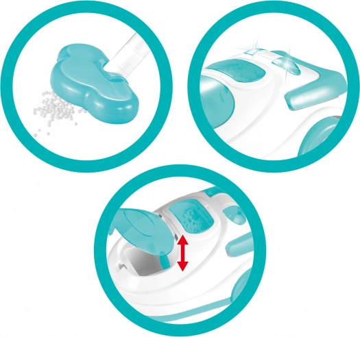 - Obsahuje plastové guličky pre pohodlné „vysávanie“.