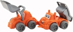 Sada obsahuje nakladač s lyžicou a auto s korbou – ideálna kombinácia pre malých staviteľov a ich prvé stavebné projekty.