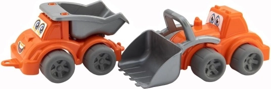 Vďaka kvalitnému plastu a pevnému spracovaniu sú hračky odolné voči každodennému používaniu. Sada obsahuje nakladač s funkčnou lyžicou a sklápač s korbou, ktoré sa skvele dopĺňajú pri hraní na stavbe.