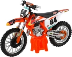 Model verne zobrazuje realistické detaily skutočného motokrosového motocykla, vrátane dizajnérskych prvkov a funkčných komponentov ako sú pneumatiky a riadidlá.