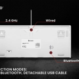 Flexibilné pripojenie: Klávesnica Phenix White podporuje tri možnosti pripojenia: bezdrôtovo (2.4 GHz), Bluetooth a káblovo cez USB, takže si môžete vybrať podľa svojich potrieb.
