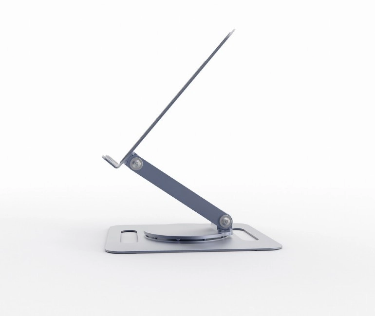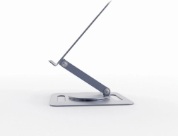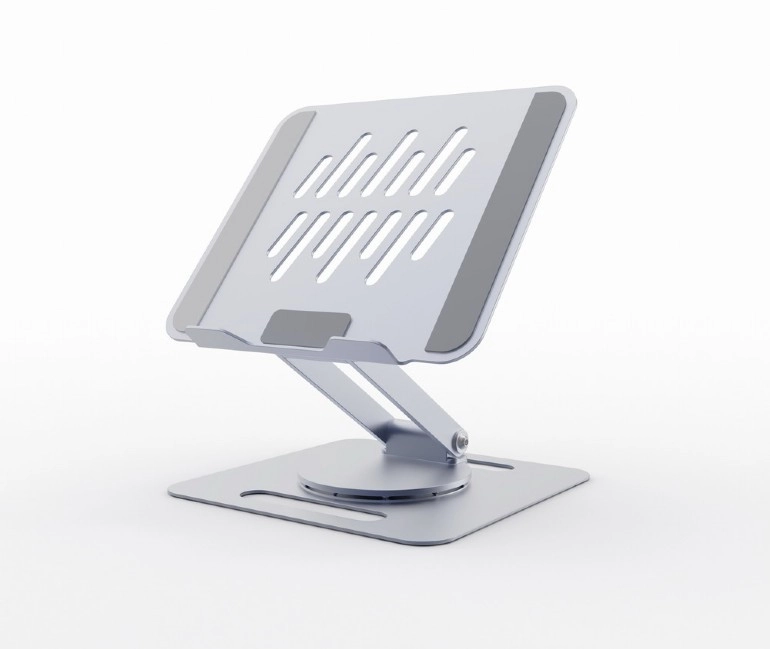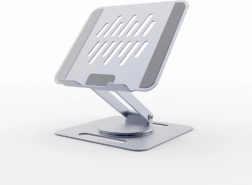 Univerzálny stojan pre notebooky do 15,6″ v elegantnej sivej farbe ponúka plynulé nastavenie výšky, otočenie o 360° a stabilnú kovovú konštrukciu. Otvorená platforma zabezpečuje výborné chladenie, zatiaľ čo silikónové podložky a bezpečnostná lišta držia zariadenie pevne na mieste. Vďaka skladacej konštrukcii je ideálny na stôl aj na cesty.