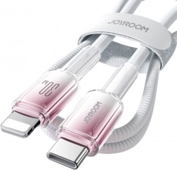 Univerzálny kábel JOYROOM s konektormi USB‑C – Lightning ponúka rýchle nabíjanie 30 W Power Delivery, odolné opletenie a bezpečné používanie vďaka inteligentnému riadeniu napätia. Skvele sa hodí pre iPhone a ďalšie zariadenia s konektorom Lightning, zároveň zvláda stabilný prenos dát 480 Mb/s.