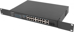 LANBERG RSFE-16P-2C-250 je spoľahlivý neřídený PoE+ prepínač pre profesionálne aj domáce siete. Okrem rýchlej a stabilnej dátovej komunikácie napája koncové zariadenia podľa IEEE 802.3af/at s celkovým výkonom až 250 W, čo zjednodušuje inštaláciu a znižuje náklady na samostatné napájacie rozvody.