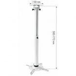 Tento biely stropný držiak na projektor kombinuje odolnú kovovú konštrukciu s praktickou flexibilitou pre perfektné umiestnenie projektora. Vďaka nastaviteľnému stĺpiku 50–77 cm ľahko prispôsobíte výšku projekcie vašim potrebám, zatiaľ čo univerzálna montážna doska umožňuje kompatibilitu s väčšinou projektorov na trhu.