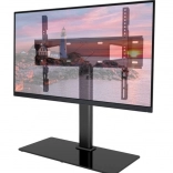 Tento stojan na televíziu je ideálnou voľbou pre moderný interiér vďaka svojmu štýlovému dizajnu s čiernym tvrdeným sklom a oceľovou konštrukciou. Podporuje VESA štandardy v rozmedzí 75 x 75 mm až 600 x 400 mm, čo znamená, že je kompatibilný s väčšinou televízorov na trhu. Montáž je jednoduchá a nevyžaduje žiadne vŕtanie, čo ocenia najmä používatelia preferujúci neinvazívne riešenia.