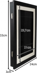 - rám, pasparta, 3 bezstopové háčiky, rohové chrániče, farebný obal, hnedá prepravná krabica
