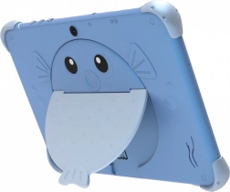 Tablet je navrhnutý s ohľadom na bezpečnosť detí, s gumovými rohmi a odolným modrým krytom, čo zaisťuje ochranu pred nárazmi a pádmi.