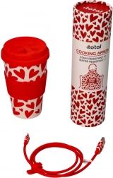 Štýlová kuchynská zástera v praktickej tube s romantickým motívom srdiečok. Ponúka spoľahlivú ochranu oblečenia, je ľahko udržiavateľná a vďaka priestrannej vrecku poskytuje praktický úložný priestor pre drobné kuchynské pomôcky.