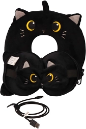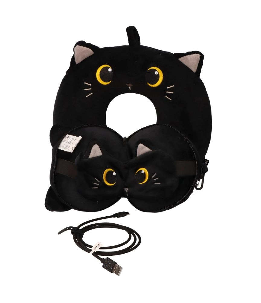 Štýlový a funkčný cestovný vankúšik v podobe roztomilej čiernej mačky je ideálny do lietadla, auta aj vlaku. U‑tvar jemne obopne krk a pomáha udržať správnu polohu hlavy, takže si na cestách skutočne oddýchnete. Hebký povrch je príjemný na dotyk a poťah možno ľahko zložiť a vyprať.