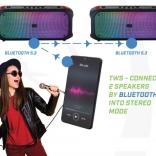 Medzi ďalšie výhody patrí dva mikrofónne vstupy, ideálne pre karaoke a spoločenské akcie, a vysoká kompatibilita s formátmi MP3, WAV, FLAC, WMA, APE. Tento reproduktor zaujme tiež 8 tlačidlami a 5 ovládačmi pre rýchle prepínanie skladieb a úpravy zvuku.