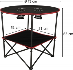 Špeciálny dizajn s otvormi na nápoje zaisťuje, že vaše pitie bude vždy po ruke a stôl zostane stabilný. Je to ideálna voľba pre tých, ktorí ocenia pohodlie a praktickosť počas kempovania, piknikov či rybárčenia. Jeho výnimočný vzhľad a funkčnosť z neho robia výnimočný produkt na trhu.