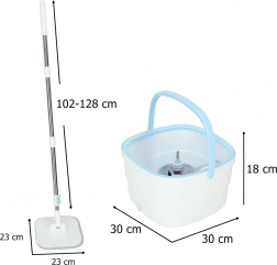 S mopom dostanete dve mikrovláknové náhradné podložky, ktoré účinne zbierajú nečistoty a prach bez zanechávania šmúh. Kompaktné vedro sa ľahko zmestí do každej skrinky a jeho ergonomický dizajn zaručuje, že zvládne aj najmenej prístupné zákutia vašich priestorov.