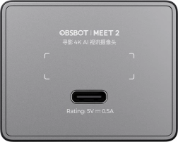 - OBSBOT Meet 2, adaptér USB‑C na USB‑A, kábel USB‑C, ochranný štít, magnetický držiak, používateľská príručka, záručný list