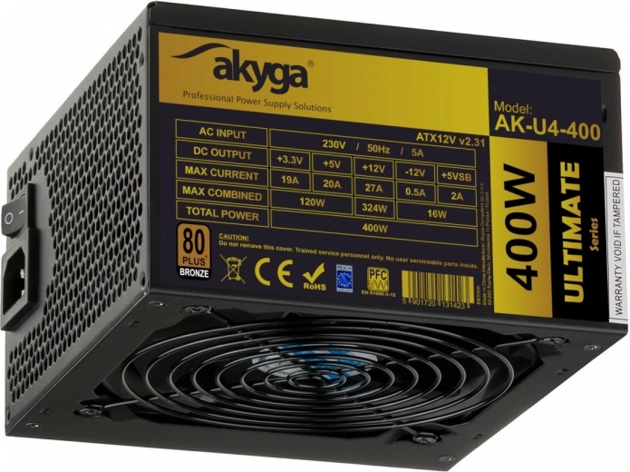 Napájací zdroj Akyga AK-U4-400 je ideálnou voľbou pre každého, kto hľadá spoľahlivý zdroj výkonu pre svoj počítač. S certifikáciou 80 PLUS Bronze garantuje efektívne prevádzku a nízku spotrebu energie. Vďaka reálnemu výkonu 400W získate stabilné dodávku energie pre vaše komponenty.