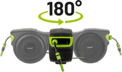 - Vyšší komfort – 25 m dlhá hadica poskytuje plný dosah a otočný držiak s nastaviteľnou koncovkou umožňuje prispôsobenie podľa situácie.