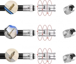 - vodoodolná, zámok proti samovoľnému rozloženiu, prachová zátka, flexibilná hadička