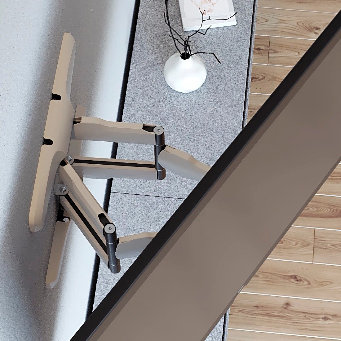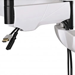 Integrovaný systém pre správu káblov pomáha udržať vaše káble organizované a mimo zraku, čo prispieva k estetickému vzhľadu miestnosti. Inštalácia je jednoduchá vďaka dodávanej montážnej sade s hmoždinkami Fischer, vodováhou, šablónou pre vŕtanie a ceruzkou.